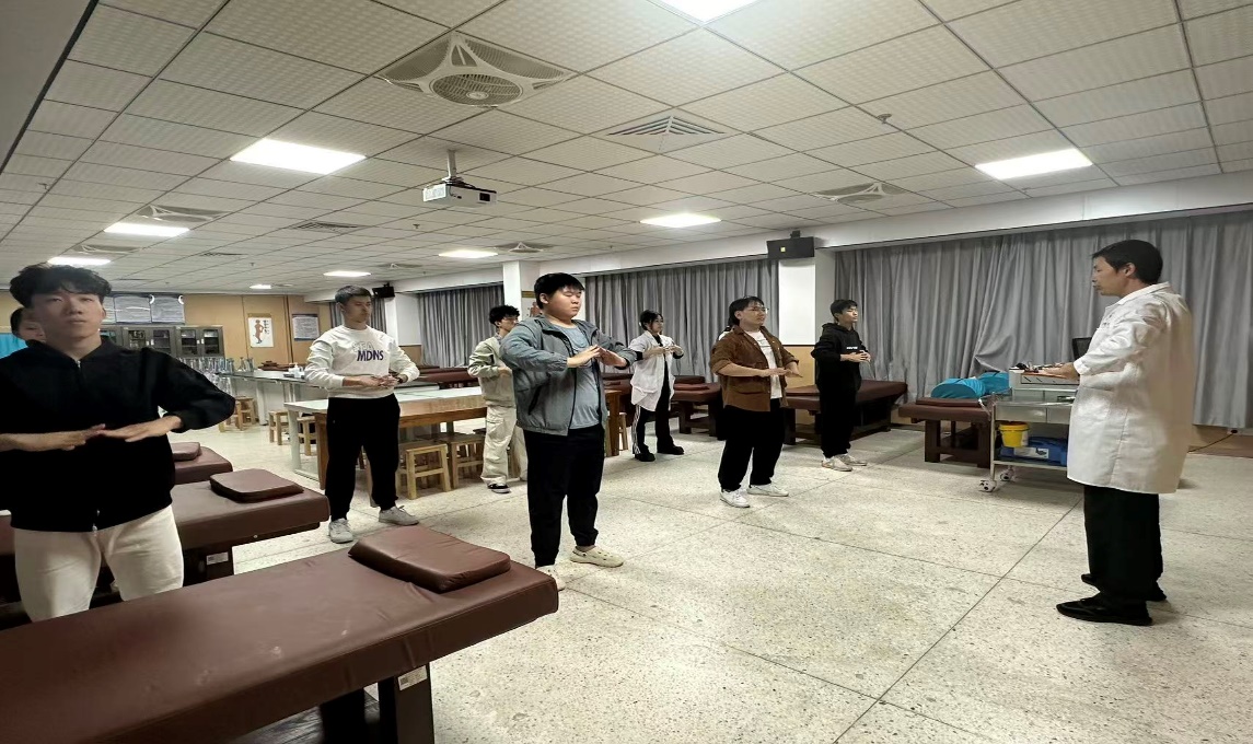 合影后,韋教授還親自傳授了一套預(yù)防頸椎、腰椎疾病的保健操,包括“米字功”、“犀牛望月”、蹲起、踮腳等動(dòng)作。我院師生和現(xiàn)場(chǎng)觀眾爭(zhēng)先恐后地跟隨韋教授練習(xí)保健操,氣氛十分熱烈。